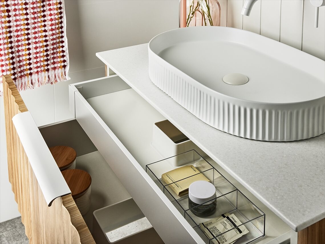 From coastal to contemporary, the Cave Vanity will compliment your bathroom with the freedom to choose any Dulux colour or a selection of woodgrain textures that’ll best suit your space.