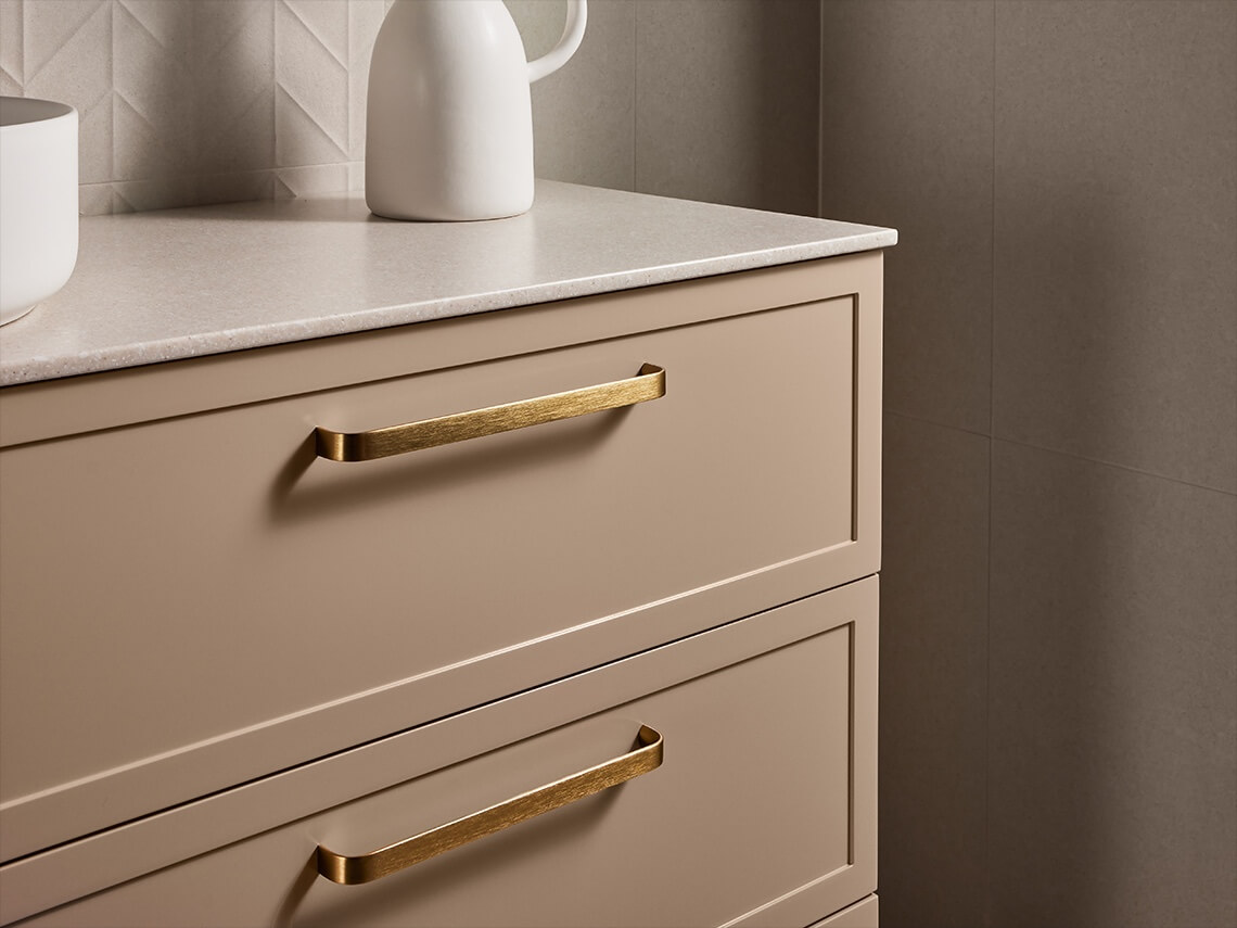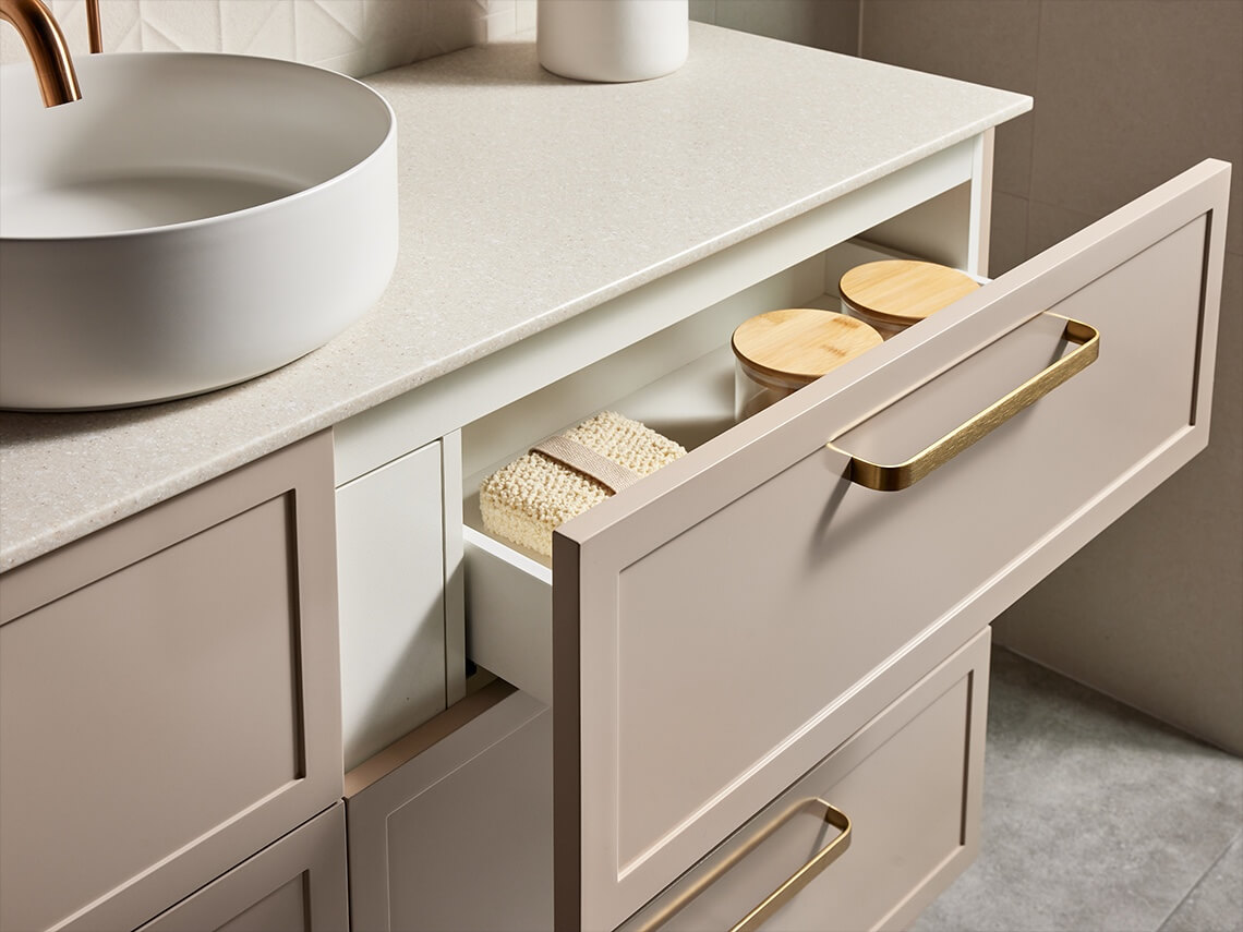 For vanities, the colour of the drawer hardware will be matched accordingly.