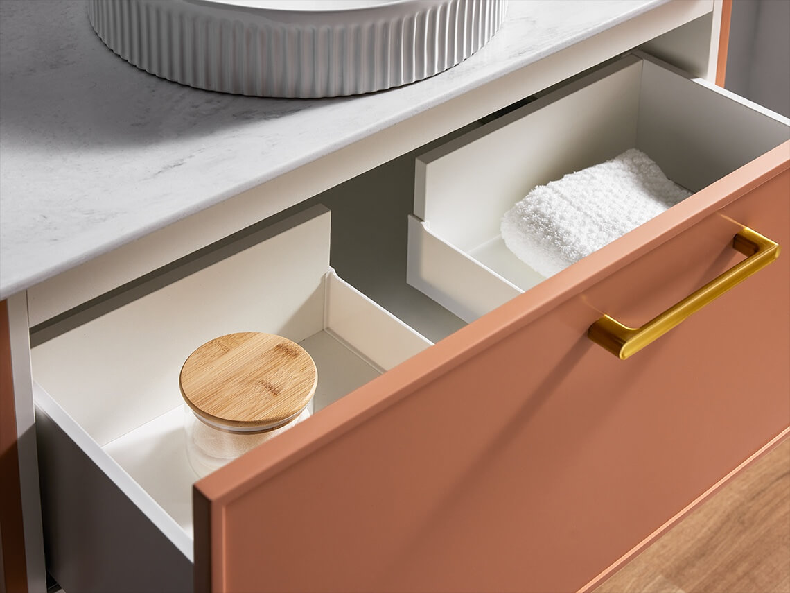 For vanities, the colour of the drawer hardware will be matched accordingly.