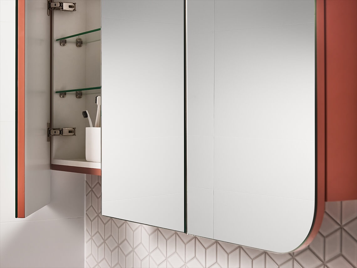 The ‘Lighting’ option is available on select mirrored cabinet models and delivers a plug and play integrated LED strip light on the underside of the cabinet.